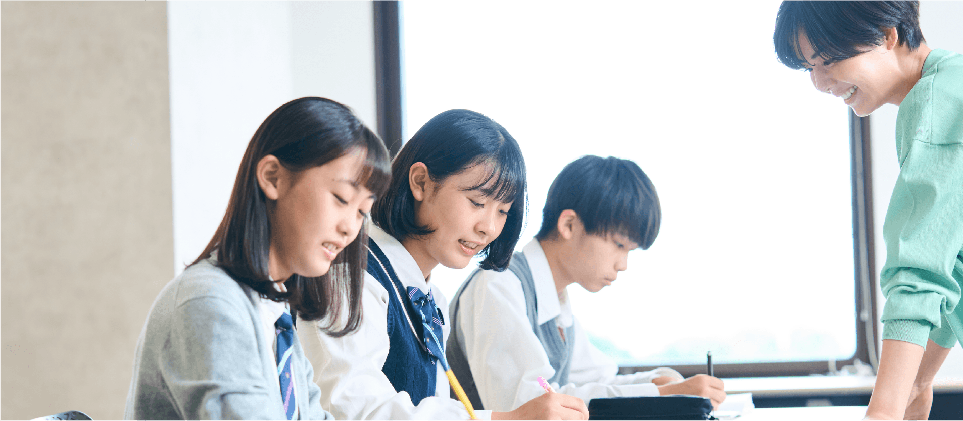 志望校合格を勝ち取るには、中学1・2年生の内容をしっかり定着させることが重要です。特に英語、数学は積み重ねの学問ですので、1つ1つの単元を確実に理解しなければ、3年生の内容のどこかでつまずくことになりかねません。カテキヨーではその子のペースに合わせ、つまずいている単元まで遡って指導していきます。